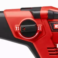 Einhell batteridrevet borhammer TE-HD 18/12 Li - Solo er en kraftfull del av den fleksibelt kombinerbare Power X-Change-familien. Alle PXC-batteriene kan kombineres med alle enhetene i systemserien. Med sine to grunnfunksjoner er den batteridrevne borhammeren en kraftig hjelper for nybegynnere og erfarne håndverkere ved boring og slagboring med arbeid tilpasset materialet. Maskinen har også en pneumatisk slagmekanisme for kraftig boring i gjenstridige materialer som betong. En effektiv motor og en robust metallgirkasse overfører et høyt dreiemoment. Uansett ytelsen til borhammeren sørger turtallselektronikken for arbeid tilpasset materialet og bruksområdet. Den universelle SDS-plus-chucken er utstyrt med halvautomatikk. Den ergonomiske utformingen av håndtaket med softgrip gir et fast og trygt grep også ved motstand. Den batteridrevne borhammeren er i tillegg utstyrt med et LED-lys for optimal belysning av arbeidsområdet. Inkludert i leveransen er en magnetisk bitsadapter for skruing. Leveres uten batteri og lader, dette må kjøpes separat, for eksempel som praktisk Power X-Change-startsett.